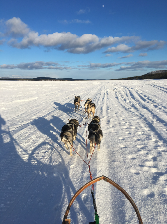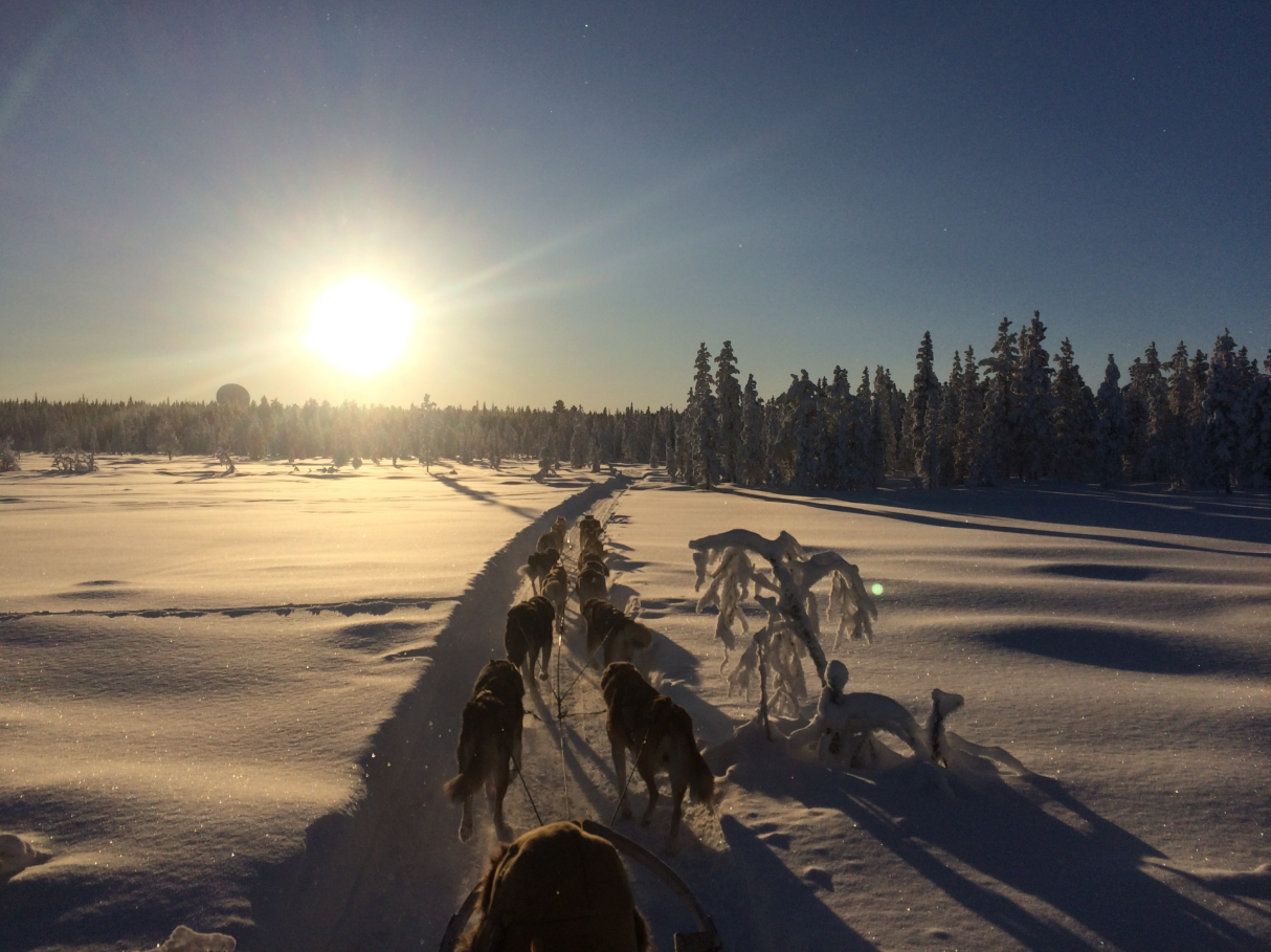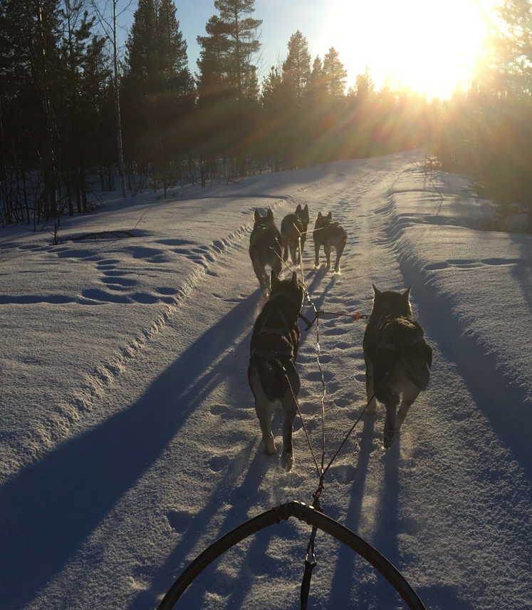 Join us on a evening mushing with the Alaskan huksies into the magical winter wonderland in the darkness. We will glide almost effortlessly through the sparse forests and endless expanses. The only sound you hear is the panting of the dogs and the runners of the sled moving over the snow. On clear evenings with a bright moon, the trees will throw shadows along the track in the forest and with a bit of luck we might also see the northern lights dancing over us while we run the sled through Europe's last wilderness.